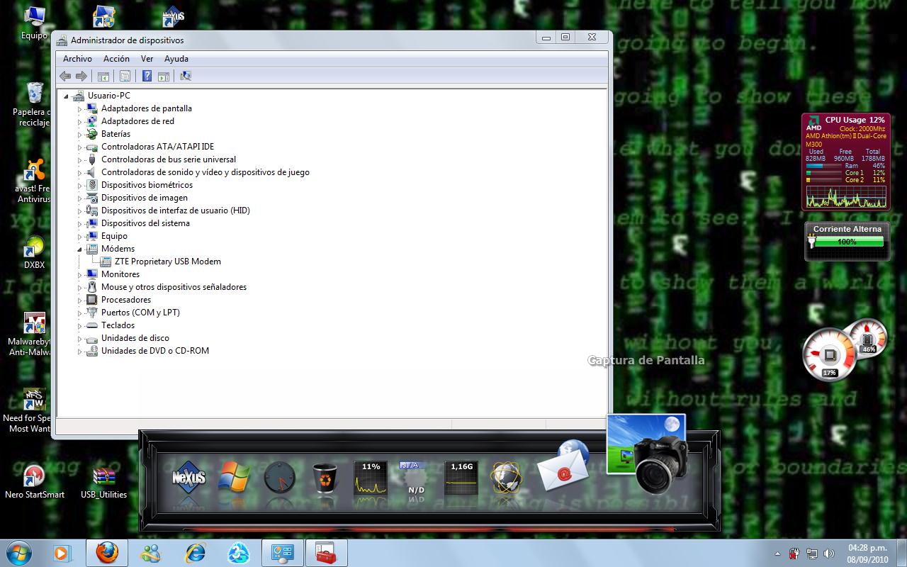 7- Sin salirnos del administrador de dispositivos nos vamos a la pestaña que muestra los modems o sea a "modems" y hacemos clik. Nos aparecera nuestro modem inalámbrico, ZTE o el que tengamos.