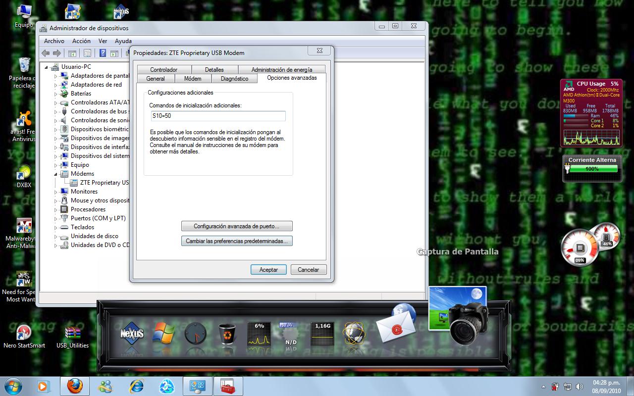4) donde dice opciones avanzadas escribe S10=50 en ojo mayusculas para que el modem no se vuelva a desconectar