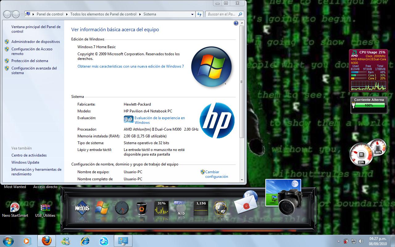 1) vamos al icono de mi pc o equipo es lo mismo y le da mos clic derecho despues propiedades y te sale esta imagen de arriba