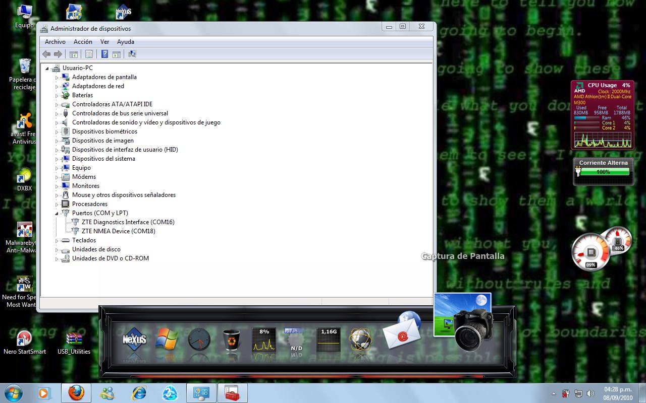 10- Cerramos el administrador de dispositivos y nos vamos a panel de contro, luego a conexiones de red y buscamos el ícono de la conexion inalámbrica. Este debe tener el nombre de la compañia o sea Claro o Tigo. Si no aparece el ícono de la conexion inalámbrica entonces antes de seguir nos vamos al programa del modem y nos conectamos a internet. Entonces debe aparecer.